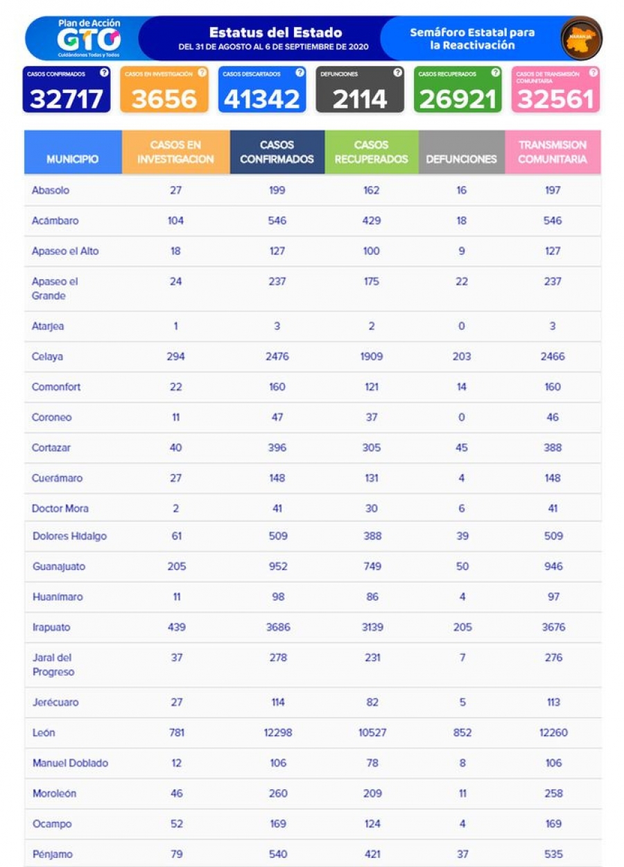 Dolores Hidalgo ocupa el número 11 de los 46 municipios del Estado en contagios.