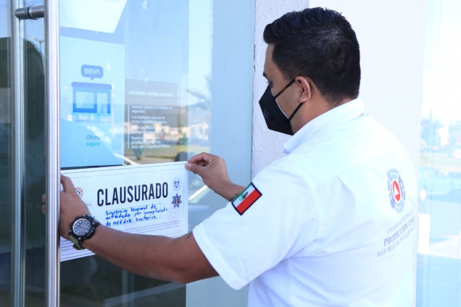 San Miguel de Allende, Gto. La dirección de Protección Civil, adscrita a la Secretaría de Seguridad Pública, clausuró el banco BBVA de Plaza La Luciérnaga por la falta de atención a las medidas de prevención contra el Covid-19.