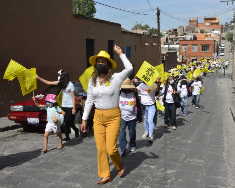 “¡Vamos, vamos Laura!” “¡Sí se puede!” “Yo voy con Laura” “Felicito a Laurita por su trabajo” fueron algunas de las consignas que se escucharon por las calles de San Miguel de Allende y que recibió la Candidata por el PRD de San Miguel de Allende, Laura Lizbeth Aguilar León (Laura Aguilar), cariñosamente llamada por la ciudadanía “Laurita Aguilar”.
