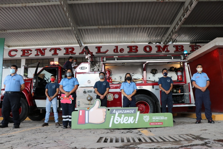 El Presidente Municipal Miguel Ángel Rayas Ortiz acompañado por la Secretaria de Ayuntamiento Lic. Jennifer Rodríguez Cárdenas, acudieron a la Central de Bomberos Voluntarios de Dolores Hidalgo entregar formalmente un camión moto bomba para atención de incendios, en donde el Alcalde reconoció el esfuerzo y dedicación que como institución dedicada a salvar vidas realizan día con día, por ello mencionó que como Administración 2018-2021 uno de los compromisos es el fortalecimiento a las diferentes instituciones de ayuda y salvamento, para que sigan brindando la atención necesaria a los dolorenses y a todos quienes lo requieren en una situación de emergencia.