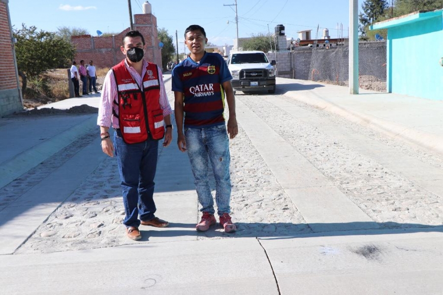De igual manera la calle 9 de octubre, del Ejido Jesús María, también lleva un avance importante en cuanto a la introducción de drenaje, redes de agua potable, tendido de huellas de concreto hidráulico con piedra bola, así como la instalación de postes y luminarias.