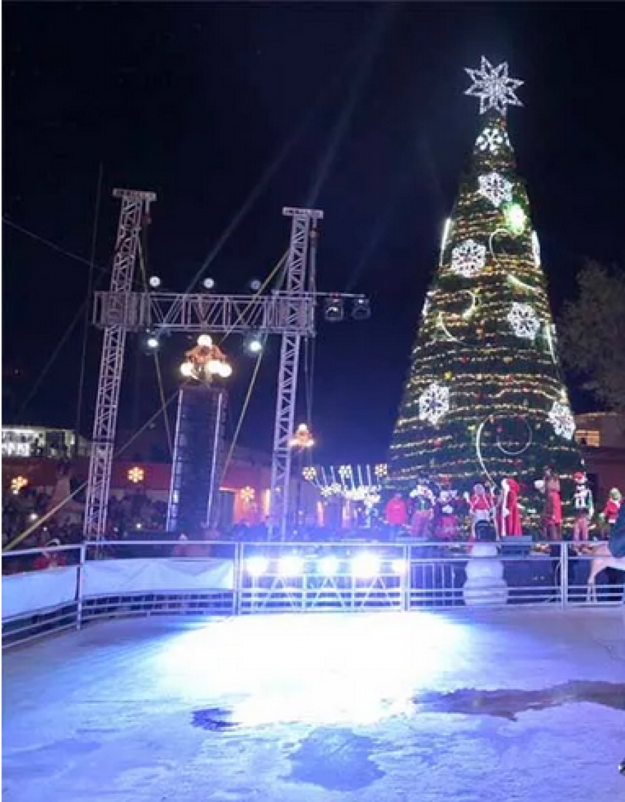 La pista de hielo que estará funcionando de las 5 de la tarde a las 11 de la noche, con un costo de $40 pesos por 30 minutos, de hoy hasta el 8 de enero del 2023, un atractivo que está siendo ya una tradición y que en esta ocasión se encuentra frente a la parroquia de nuestra Señora de los Dolores.